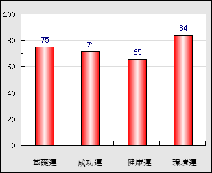環境運 家庭や職場等での援助運・環境運を司ります。これが良いと配偶者や子供・職場の同僚などから助力が得られやすく、悪いと波乱・不和・孤独などがあります。 84点