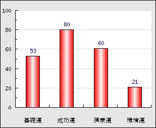 成功運 目的に対する成功運の強さをあらわします。この点数が高いほど自分の思い通りに成功し、逆に悪いと逆境・批判・障害などに苦心します。 80点
