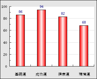 成功運 目的に対する成功運の強さをあらわします。この点数が高いほど自分の思い通りに成功し、逆に悪いと逆境・批判・障害などに苦心します。 94点
