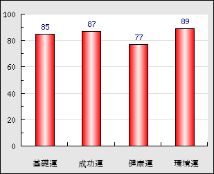 環境運 家庭や職場等での援助運・環境運を司ります。これが良いと配偶者や子供・職場の同僚などから助力が得られやすく、悪いと波乱・不和・孤独などがあります。 89点