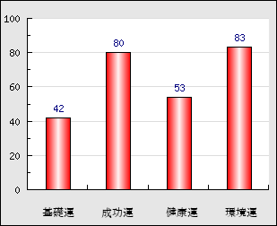 環境運 家庭や職場等での援助運・環境運を司ります。これが良いと配偶者や子供・職場の同僚などから助力が得られやすく、悪いと波乱・不和・孤独などがあります。 83点