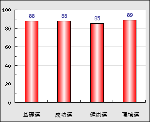環境運 家庭や職場等での援助運・環境運を司ります。これが良いと配偶者や子供・職場の同僚などから助力が得られやすく、悪いと波乱・不和・孤独などがあります。 89点
