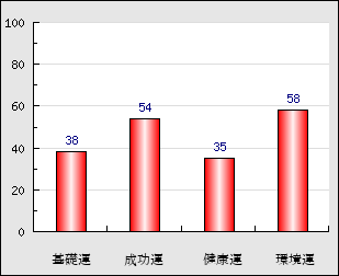 環境運 家庭や職場等での援助運・環境運を司ります。これが良いと配偶者や子供・職場の同僚などから助力が得られやすく、悪いと波乱・不和・孤独などがあります。 58点
