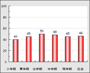 | 幼年期 | ~20歳頃 | 46.9点- 5.0 |