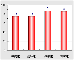 成功運 目的に対する成功運の強さをあらわします。この点数が高いほど自分の思い通りに成功し、逆に悪いと逆境・批判・障害などに苦心します。 75点