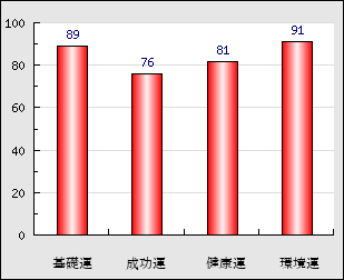 環境運 家庭や職場等での援助運・環境運を司ります。これが良いと配偶者や子供・職場の同僚などから助力が得られやすく、悪いと波乱・不和・孤独などがあります。 91点