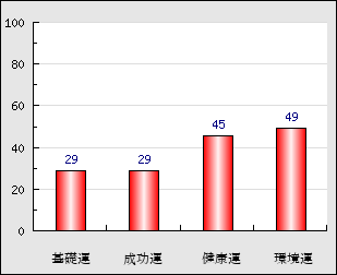 環境運 家庭や職場等での援助運・環境運を司ります。これが良いと配偶者や子供・職場の同僚などから助力が得られやすく、悪いと波乱・不和・孤独などがあります。 49点
