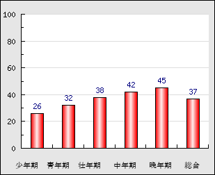 | 幼年期 | ~20歳頃 | 47.1点- 5.7 |