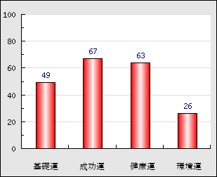 環境運 家庭や職場等での援助運・環境運を司ります。これが良いと配偶者や子供・職場の同僚などから助力が得られやすく、悪いと波乱・不和・孤独などがあります。 26点