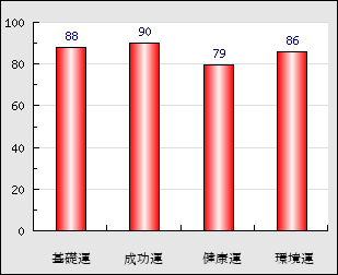 成功運 目的に対する成功運の強さをあらわします。この点数が高いほど自分の思い通りに成功し、逆に悪いと逆境・批判・障害などに苦心します。 90点