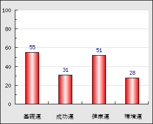 環境運 家庭や職場等での援助運・環境運を司ります。これが良いと配偶者や子供・職場の同僚などから助力が得られやすく、悪いと波乱・不和・孤独などがあります。 28点