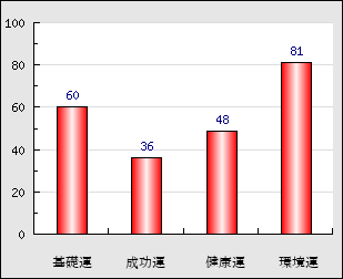 環境運 家庭や職場等での援助運・環境運を司ります。これが良いと配偶者や子供・職場の同僚などから助力が得られやすく、悪いと波乱・不和・孤独などがあります。 81点