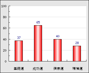 成功運 目的に対する成功運の強さをあらわします。この点数が高いほど自分の思い通りに成功し、逆に悪いと逆境・批判・障害などに苦心します。 65点
