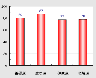 環境運 家庭や職場等での援助運・環境運を司ります。これが良いと配偶者や子供・職場の同僚などから助力が得られやすく、悪いと波乱・不和・孤独などがあります。 78点