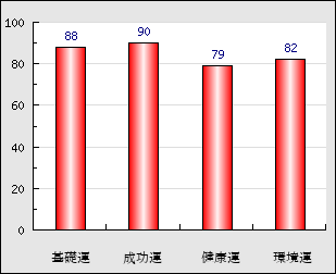 成功運 目的に対する成功運の強さをあらわします。この点数が高いほど自分の思い通りに成功し、逆に悪いと逆境・批判・障害などに苦心します。 90点
