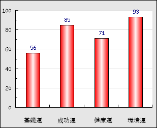 成功運 目的に対する成功運の強さをあらわします。この点数が高いほど自分の思い通りに成功し、逆に悪いと逆境・批判・障害などに苦心します。 85点