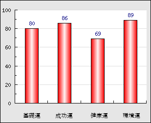 環境運 家庭や職場等での援助運・環境運を司ります。これが良いと配偶者や子供・職場の同僚などから助力が得られやすく、悪いと波乱・不和・孤独などがあります。 89点