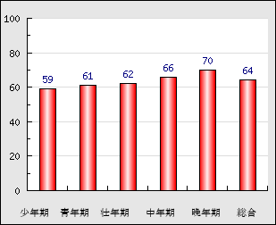 | 中年期 | 50~65歳頃 | 69.2点+ 0.4 |