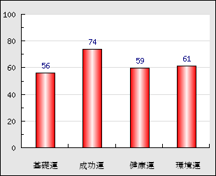 成功運 目的に対する成功運の強さをあらわします。この点数が高いほど自分の思い通りに成功し、逆に悪いと逆境・批判・障害などに苦心します。 74点