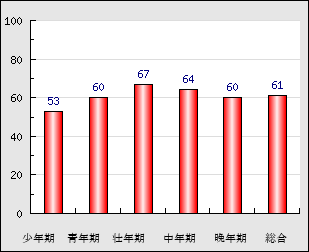 | 晩年期 | 65歳~ | 74.3点+ 1.3 |