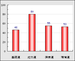 成功運 目的に対する成功運の強さをあらわします。この点数が高いほど自分の思い通りに成功し、逆に悪いと逆境・批判・障害などに苦心します。 80点