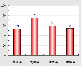 成功運 目的に対する成功運の強さをあらわします。この点数が高いほど自分の思い通りに成功し、逆に悪いと逆境・批判・障害などに苦心します。 75点