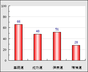 環境運 家庭や職場等での援助運・環境運を司ります。これが良いと配偶者や子供・職場の同僚などから助力が得られやすく、悪いと波乱・不和・孤独などがあります。 28点
