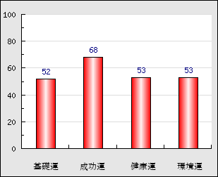 成功運 目的に対する成功運の強さをあらわします。この点数が高いほど自分の思い通りに成功し、逆に悪いと逆境・批判・障害などに苦心します。 68点