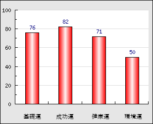 環境運 家庭や職場等での援助運・環境運を司ります。これが良いと配偶者や子供・職場の同僚などから助力が得られやすく、悪いと波乱・不和・孤独などがあります。 50点