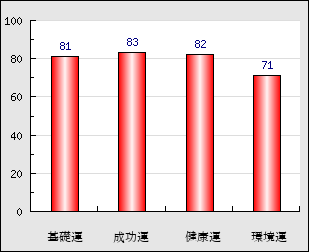環境運 家庭や職場等での援助運・環境運を司ります。これが良いと配偶者や子供・職場の同僚などから助力が得られやすく、悪いと波乱・不和・孤独などがあります。 71点