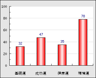 環境運 家庭や職場等での援助運・環境運を司ります。これが良いと配偶者や子供・職場の同僚などから助力が得られやすく、悪いと波乱・不和・孤独などがあります。 78点