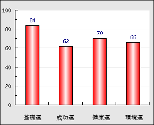 成功運 目的に対する成功運の強さをあらわします。この点数が高いほど自分の思い通りに成功し、逆に悪いと逆境・批判・障害などに苦心します。 62点