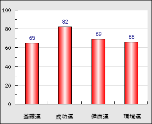 成功運 目的に対する成功運の強さをあらわします。この点数が高いほど自分の思い通りに成功し、逆に悪いと逆境・批判・障害などに苦心します。 82点
