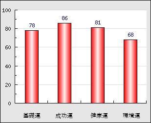 成功運 目的に対する成功運の強さをあらわします。この点数が高いほど自分の思い通りに成功し、逆に悪いと逆境・批判・障害などに苦心します。 86点