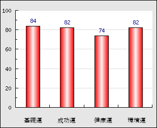 環境運 家庭や職場等での援助運・環境運を司ります。これが良いと配偶者や子供・職場の同僚などから助力が得られやすく、悪いと波乱・不和・孤独などがあります。 82点