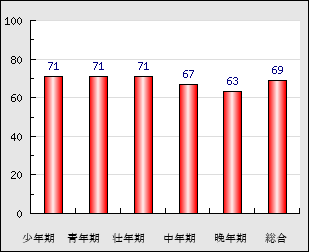 | 晩年期 | 65歳~ | 69.8点- 4.2 |