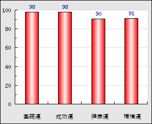 成功運 目的に対する成功運の強さをあらわします。この点数が高いほど自分の思い通りに成功し、逆に悪いと逆境・批判・障害などに苦心します。 98点