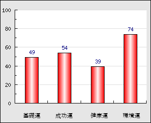 環境運 家庭や職場等での援助運・環境運を司ります。これが良いと配偶者や子供・職場の同僚などから助力が得られやすく、悪いと波乱・不和・孤独などがあります。 74点