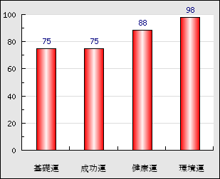 環境運 家庭や職場等での援助運・環境運を司ります。これが良いと配偶者や子供・職場の同僚などから助力が得られやすく、悪いと波乱・不和・孤独などがあります。 98点