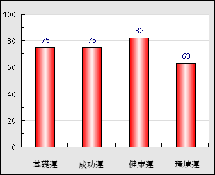 環境運 家庭や職場等での援助運・環境運を司ります。これが良いと配偶者や子供・職場の同僚などから助力が得られやすく、悪いと波乱・不和・孤独などがあります。 63点
