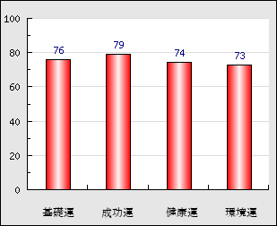 環境運 家庭や職場等での援助運・環境運を司ります。これが良いと配偶者や子供・職場の同僚などから助力が得られやすく、悪いと波乱・不和・孤独などがあります。 73点