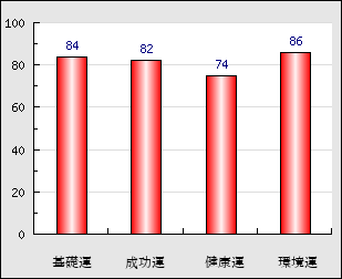 環境運 家庭や職場等での援助運・環境運を司ります。これが良いと配偶者や子供・職場の同僚などから助力が得られやすく、悪いと波乱・不和・孤独などがあります。 86点