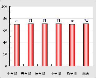 | 中年期 | 50~65歳頃 | 71点 0.0 |