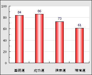 成功運 目的に対する成功運の強さをあらわします。この点数が高いほど自分の思い通りに成功し、逆に悪いと逆境・批判・障害などに苦心します。 86点