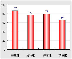 環境運 家庭や職場等での援助運・環境運を司ります。これが良いと配偶者や子供・職場の同僚などから助力が得られやすく、悪いと波乱・不和・孤独などがあります。 66点