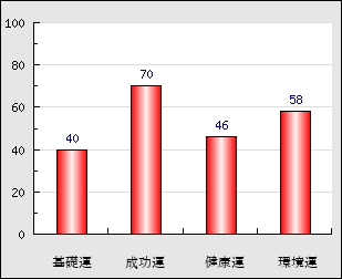 成功運 目的に対する成功運の強さをあらわします。この点数が高いほど自分の思い通りに成功し、逆に悪いと逆境・批判・障害などに苦心します。 70点