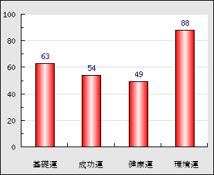 環境運 家庭や職場等での援助運・環境運を司ります。これが良いと配偶者や子供・職場の同僚などから助力が得られやすく、悪いと波乱・不和・孤独などがあります。 88点
