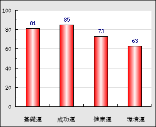 成功運 目的に対する成功運の強さをあらわします。この点数が高いほど自分の思い通りに成功し、逆に悪いと逆境・批判・障害などに苦心します。 85点