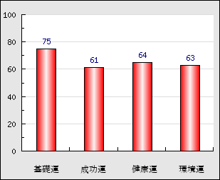 環境運 家庭や職場等での援助運・環境運を司ります。これが良いと配偶者や子供・職場の同僚などから助力が得られやすく、悪いと波乱・不和・孤独などがあります。 63点