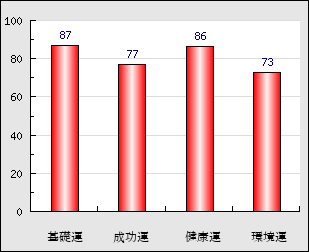 環境運 家庭や職場等での援助運・環境運を司ります。これが良いと配偶者や子供・職場の同僚などから助力が得られやすく、悪いと波乱・不和・孤独などがあります。 73点